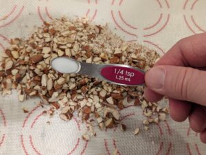 Sprinkle on the correct amount of salt, then mix the nuts, butter and salt together