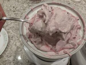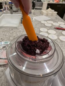 - Add berry pulp to ice cream freezer during last minute of freezing.