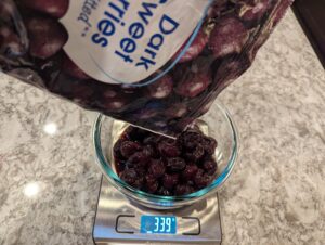 - Pit cherries. Put in blender.