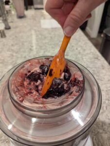 - Add cherry pulp to ice cream freezer during last minute of freezing.