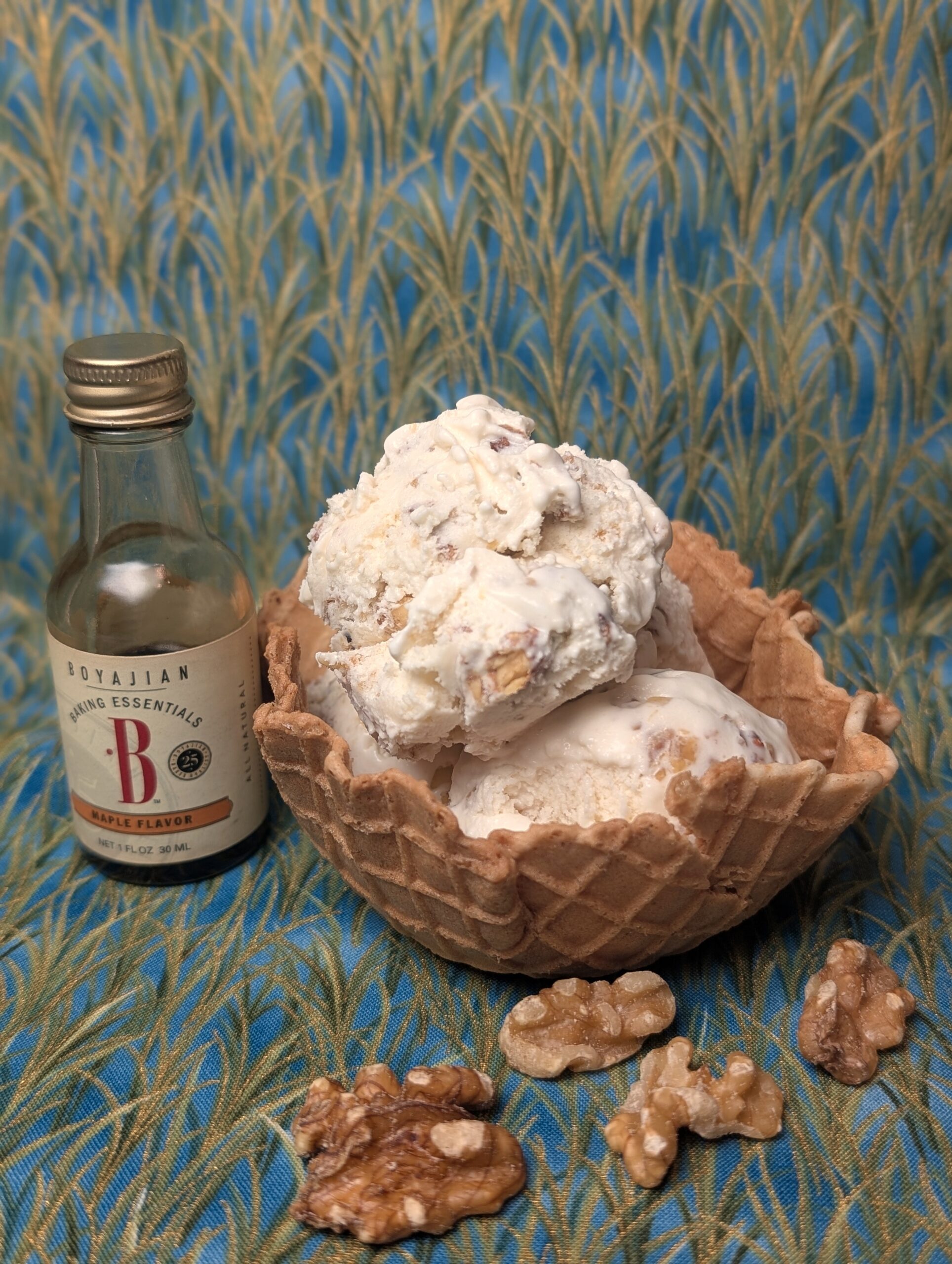 Maple walnut ice cream is an older flavor that is especially popular in Canada. Once you taste it, with its toasted chopped walnuts, sweet 100% maple syrup, and outstanding maple flavor, it will be one of your favorites too!