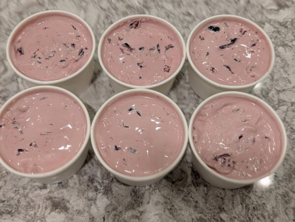 When we make ice cream, this is one of the most requested flavors. The Lemon gives it a sweet tartness that tastes like summertime, and the sweet blackberries perfectly balance the lemon to produce an amazing experience!