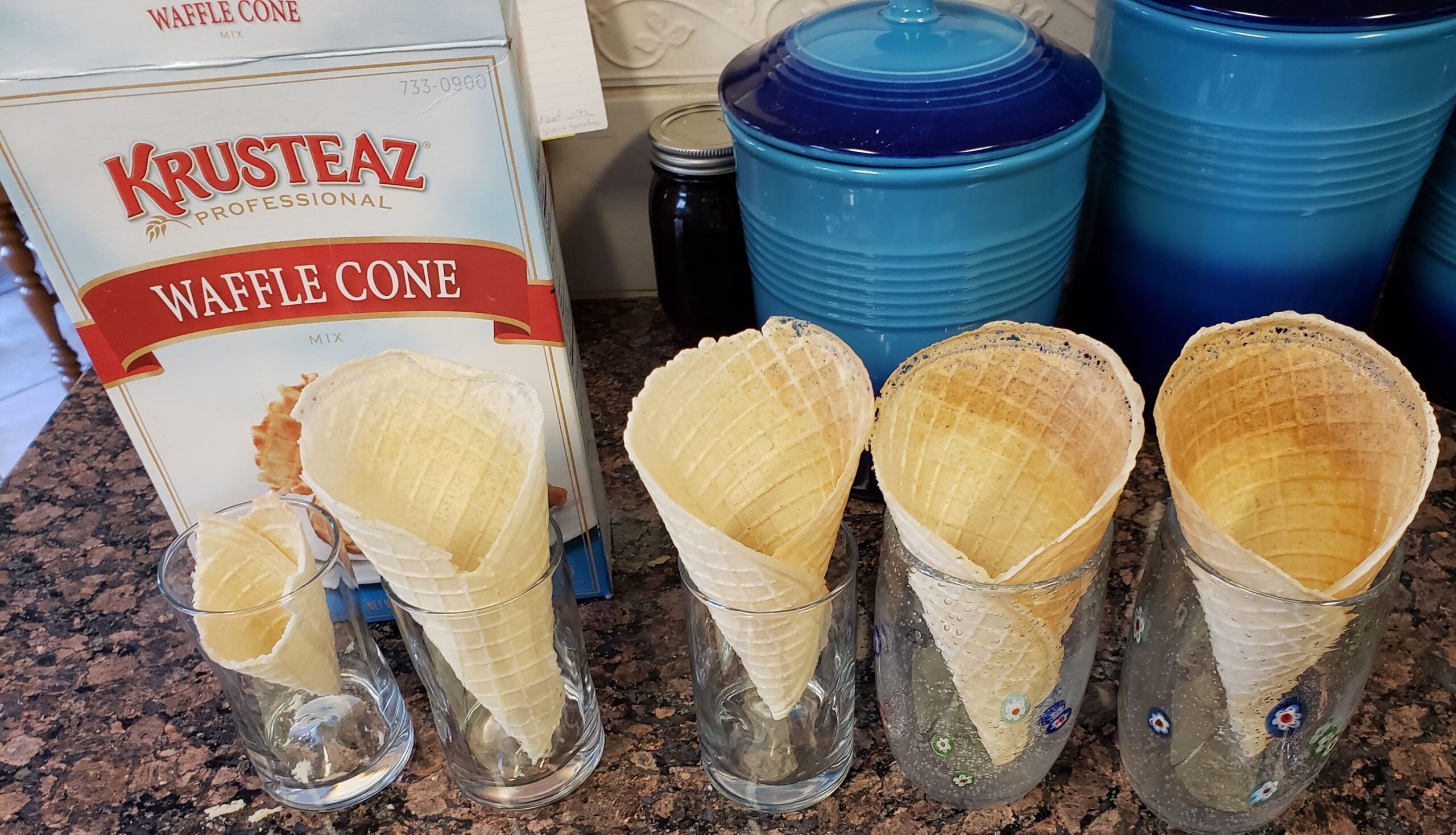Krusteaz Waffle Cone Mix is available on Amazon