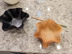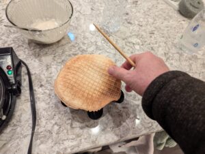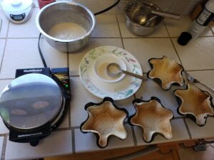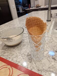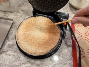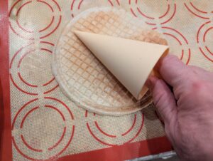 - Note: You must work quickly as the waffle will cool withing a few seconds and become too brittle to bend around form