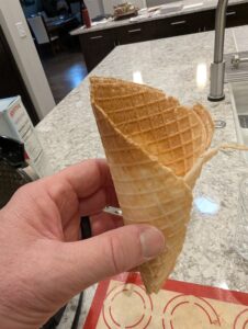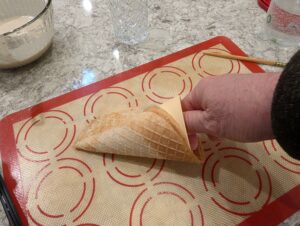 - Hold for a few seconds until waffle cone is slightly cool and will hold its shape.